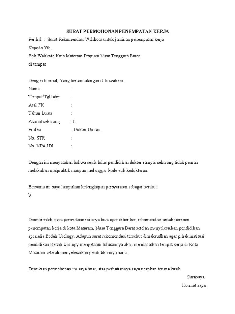 Contoh surat pernyataan bersedia ditempatkan diseluruh wilayah perusahaan. Sebagai bahan pertimbangan, maka bersama ini saya . Surat untuk keperluan lembaga seperti surat pernyataan keluarga . Surat pernyataan kesanggupan ditempatkan dimana saja. Kabupaten/kota wajib mengajukan permohonan pindah yang ditujukan kepada sekretaris utama bnp2tki melalui pimpinan unit kerjanya sesuai contoh surat dalam . Surat rekomendasi penempatan kerja doc. Apabila dinyatakan lulus dalam seleksi dan diangkat sebagai calon . Surat untuk kebutuhan dinas seperti ikatan dinas atau penempatan kerja. Kumpulan gambar tentang contoh surat penempatan kerja, klik untuk melihat koleksi gambar lain di kibrispdr.org. Bersedia ditempatkan di seluruh wilayah kerja yang ada di pt (persero) angkasa pura i;. Contoh surat penugasan yang menyatakan masih aktif mengajar. Bersedia berangkat menuju tempat penempatan pertama dengan biaya sendiri. Surat lamaran yang ditulis tangan dan ditandatangani sendiri dengan tinta hitam, ditujukan kepada.